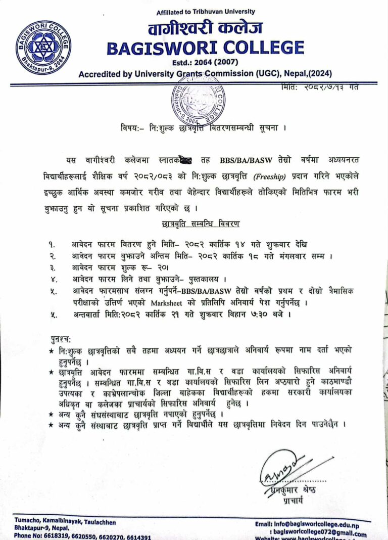 рд╕реНрдирд╛рддрдХ рддреЗрд╕реНрд░реЛ рд╡рд░реНрд╖рдорд╛ рдЕрдзреНрдпрдпрдирд░рдд рд╡рд┐рджреНрдпрд╛рд░реНрдереАрд╣рд░реБрд▓рд╛рдИ рдирд┐рдГрд╢реБрд▓реНрдХ рдЫрд╛рддреНрд░рд╡реГрддреНрддрд┐ рд╡рд┐рддрд░рдг рд╕рдореНрдмрдиреНрдзреА рд╕реВрдЪрдирд╛ Read More ┬╗