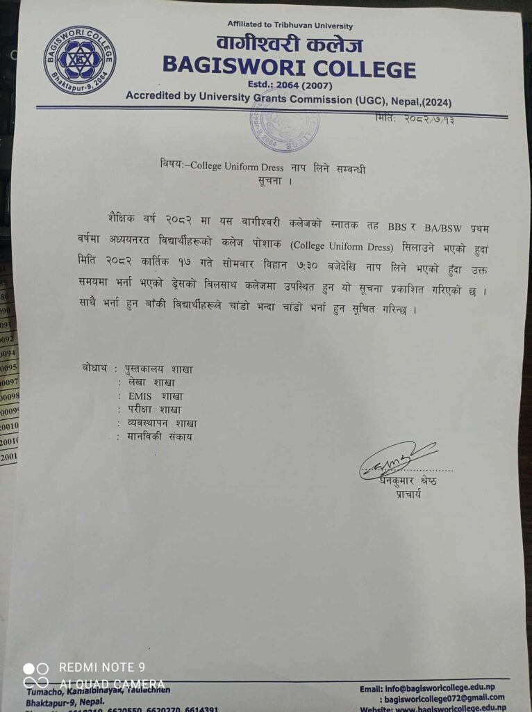 स्नातक तेस्रो वर्षमा अध्ययनरत विद्यार्थीहरुलाई निःशुल्क छात्रवृत्ति वितरण सम्बन्धी सूचना.....