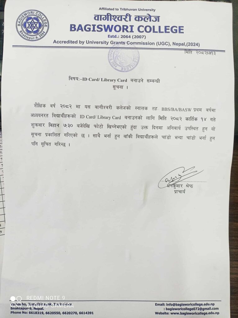 ID Card/Library Card बनाउने सम्बन्धी सूचना.....